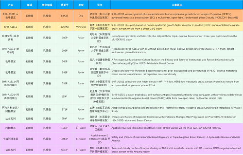 在乳腺癌领域,AG视讯创新产品相关研究共入选1项口头报告、1项简短口头报告、8项壁报和3项电子壁报,共13项研究。吡咯替尼、达尔西利、阿得贝利单抗、瑞康曲妥珠单抗等新老创新药物,均有多篇研究入选,展现出AG视讯医药在乳腺癌领域多年深耕的丰硕成果。